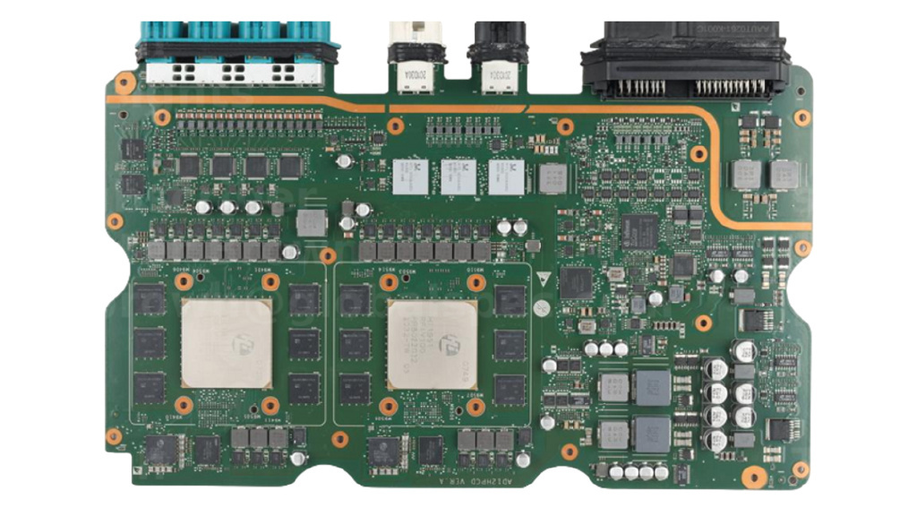 The motherboard is the core of the MDC Pro 610, equipped with HiSilicon's automotive SoC and Samsung's 12 GB LPDDR5 SDRAM, delivering high efficiency in processing complex computational tasks such as image recognition, sensor data processing, and real-time decision-making.