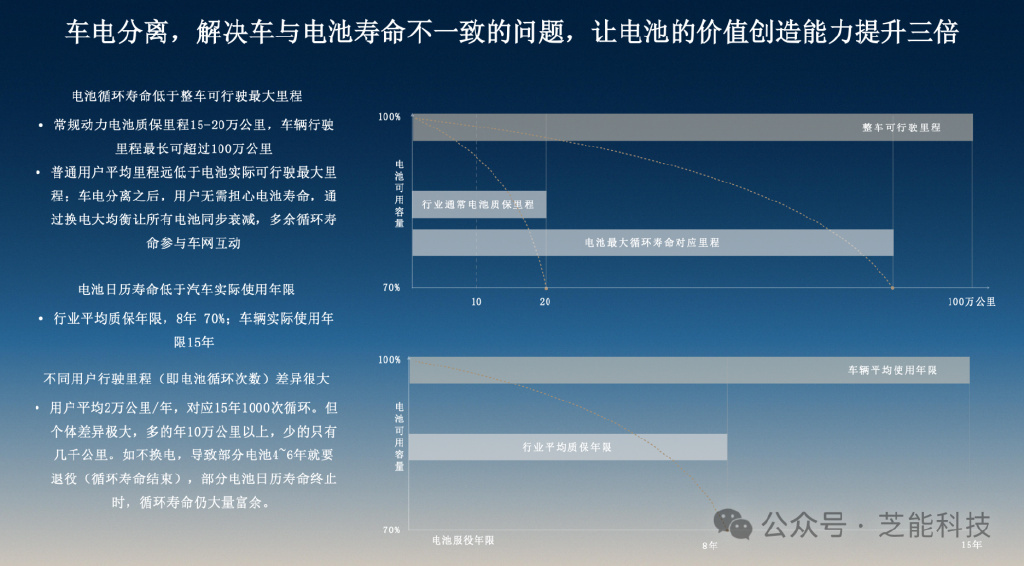 车电分离的核心在于将车辆和电池的使用寿命分开管理,从而解决传统电动车中 “电池寿命不等于车辆寿命” 的痛点。
