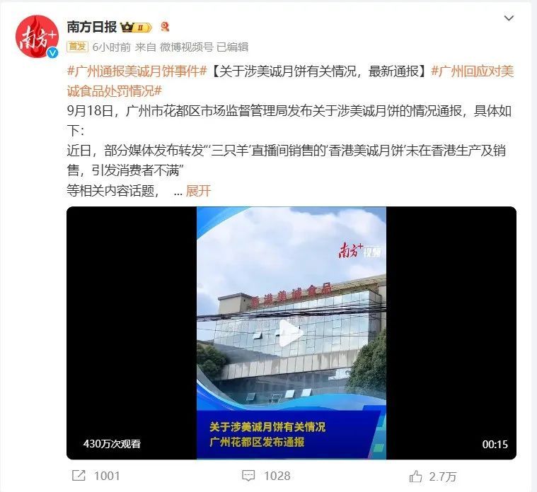 On the eve of the Mid-Autumn Festival, the "Hong Kong premium mooncakes" by Meicheng, with monthly sales of 50 million yuan, were exposed as being manufactured in Guangdong, sparking public skepticism about Three Sheep's potential false advertising.