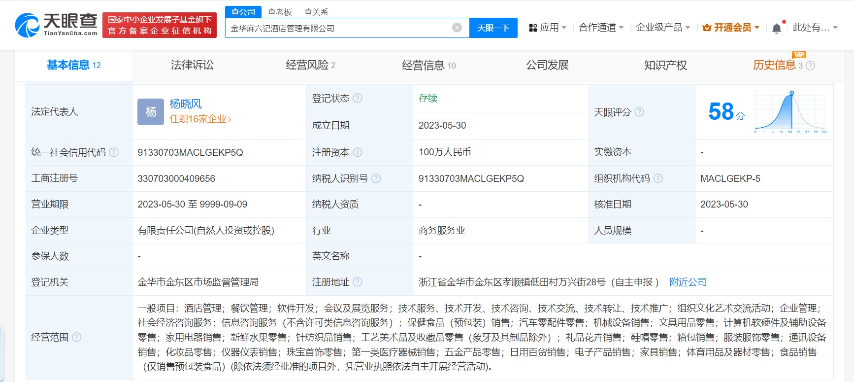 Jinhua Maliuji Hotel Management Co., Ltd. was established in May 2023, with Yang Xiaofeng as the legal representative and a registered capital of 1 million RMB. Its business scope includes hotel management, catering management, software development, conference and exhibition services, socio-economic consulting services, and information consulting services. Shareholder information shows that the company is jointly held by Wang Xiaofei and Beijing Maliuji Hotel Management Co., Ltd. Risk information indicates that in July of this year, the company was listed in the abnormal business directory by the Jinhua Jindong District Market Supervision and Administration Bureau for failing to disclose its annual report within the stipulated period.
