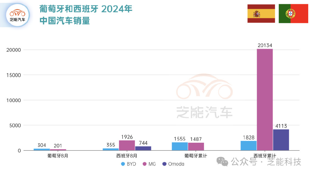 ◎ 西班牙:比亚迪、名爵和 Omoda 的 8 月销量分别为 355、1926 和 744 台,1-8 月累计为 1828、20134 和 4113 台。