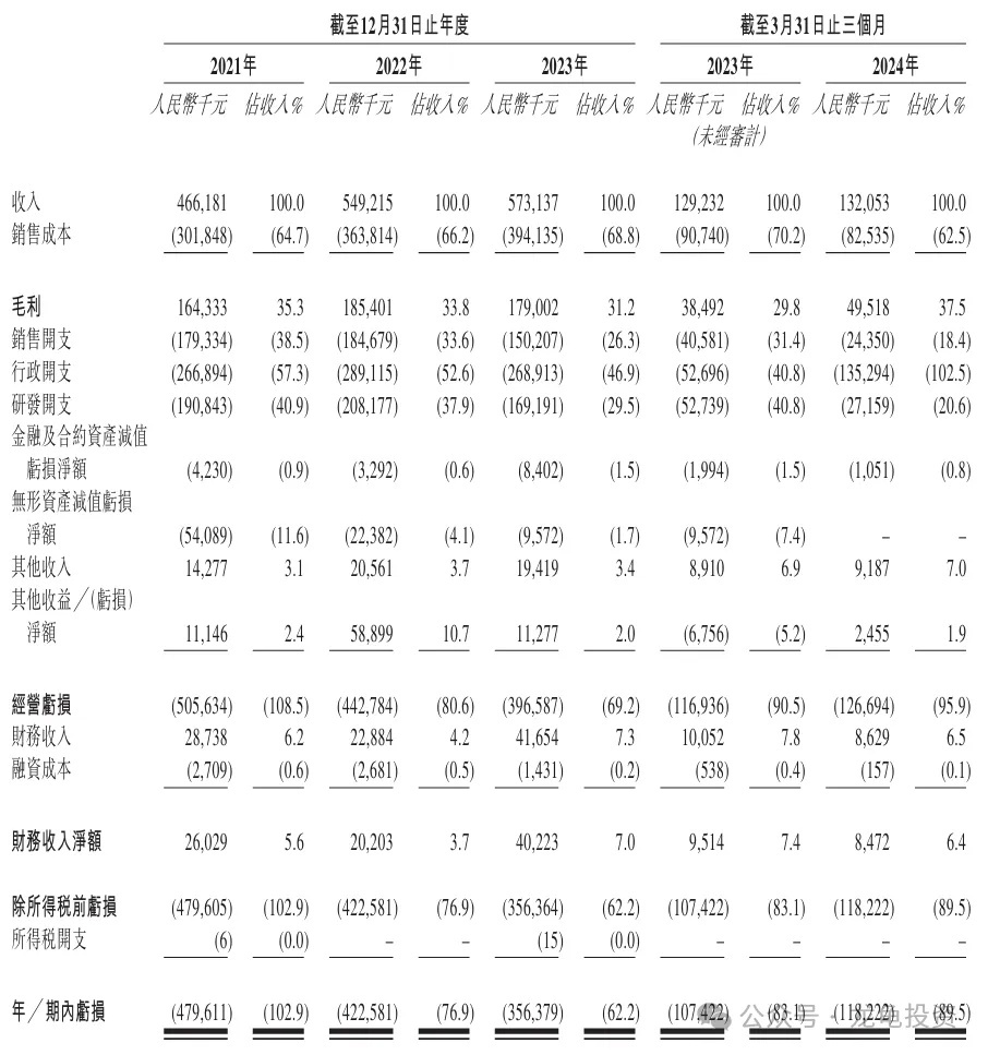 Gross Profit: RMB 164 million in 2021, RMB 185 million in 2022, RMB 179 million in 2023, and RMB 190 million for the 12 months ending March 2024.
