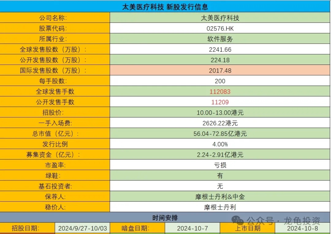 The valuation of medical SaaS platforms has declined significantly over the past two to three years, and they are no longer considered premium assets. Although Hong Kong stocks are transitioning from a bear to a bull market, more established companies in this sector are still languishing. Taimei Medical's IPO valuation offers no advantage. For example, previously listed companies like Yidu Tech and Medlive Technology were once hot stocks. Yidu Tech now has a market cap of HKD 3.704 billion (down from HKD 23.716 billion at its December 2020 IPO), with 2023 revenue of RMB 805 million and a net loss of RMB 632 million. Medlive Technology has a current market cap of HKD 6.317 billion (down from HKD 18.773 billion at its June 2021 IPO), with 2023 revenue of RMB 412 million and net profit of RMB 252 million (P/E of 23.43x). Taimei Medical's IPO valuation of HKD 5.604–7.285 billion, with 2023 revenue of RMB 573 million and a net loss of RMB 356 million, seems unjustified. My rough estimate puts its fair value at no more than HKD 4 billion.