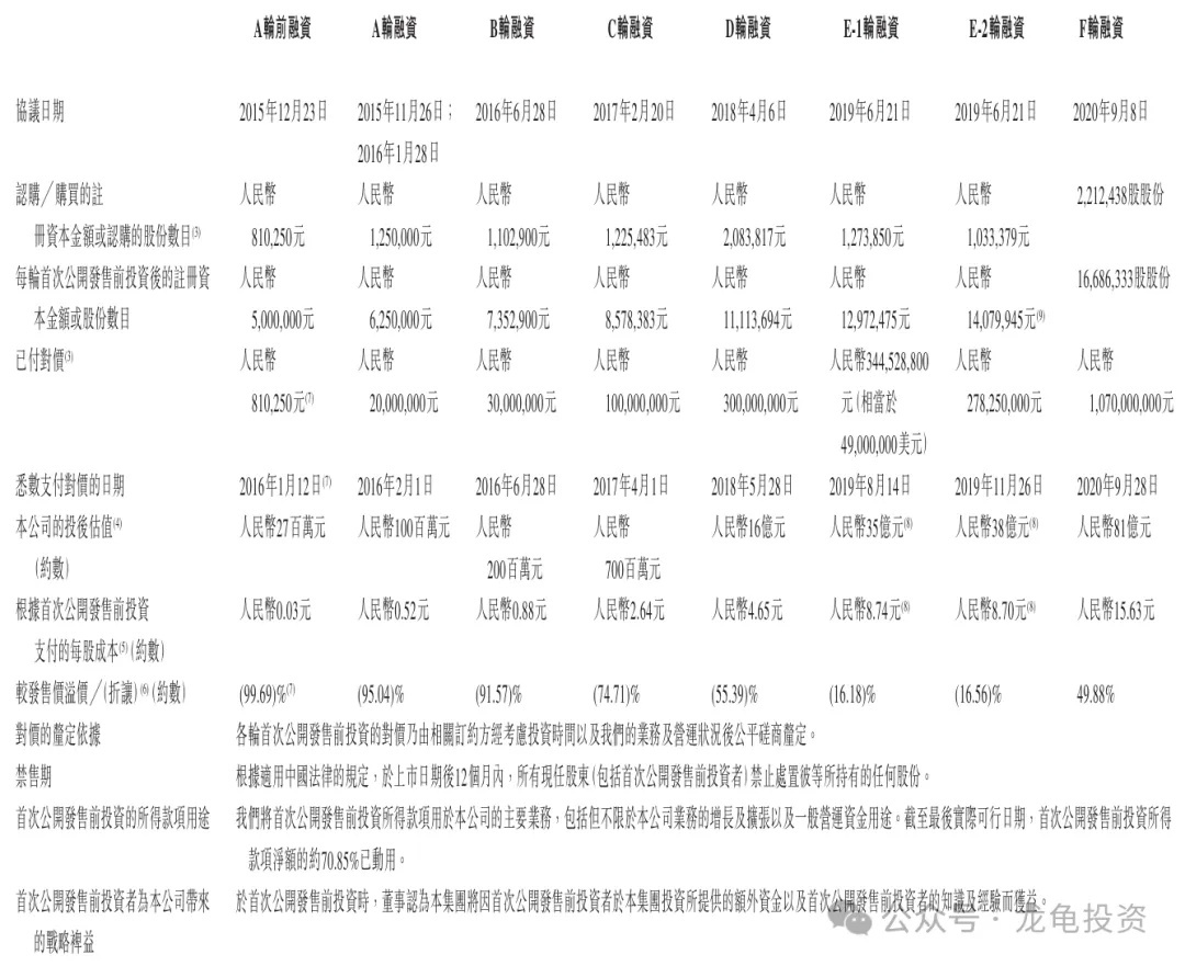 Taimei Medical completed a total of 8 rounds of financing before its IPO, from the A-round in 2015 at RMB 0.03 per share to the F-round in 2020 at RMB 15.63 per share, transitioning from a 99.69% discount to a 49.88% premium. Post the F-round, the company was valued at RMB 8.1 billion (approximately HKD 8.935 billion). The current IPO valuation ranges from HKD 5.604 billion to HKD 7.285 billion, meaning all F-round pre-IPO investors are now underwater. This reflects the broader trend where medical-related SaaS platforms saw inflated valuations during the boom but suffered severe declines afterward. Pre-IPO investors are subject to a 12-month lock-up period.