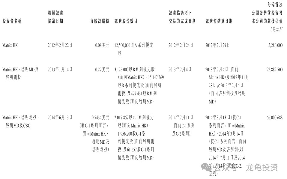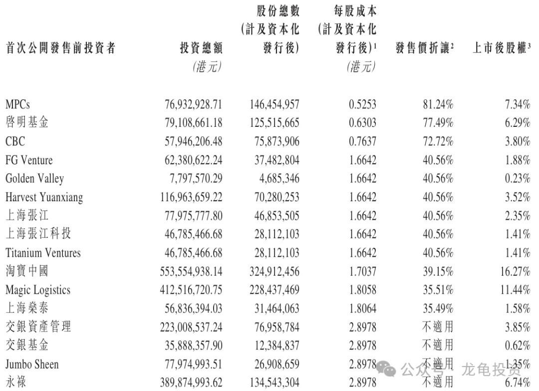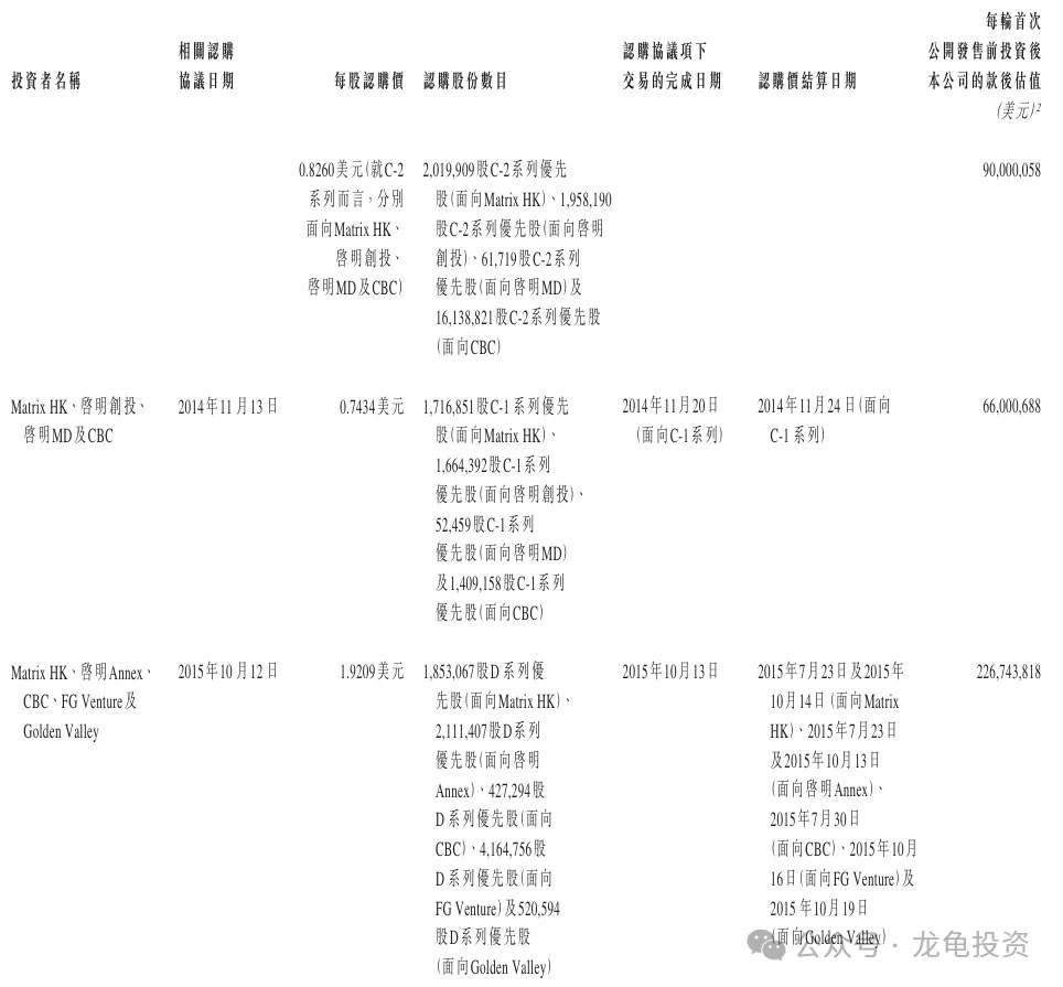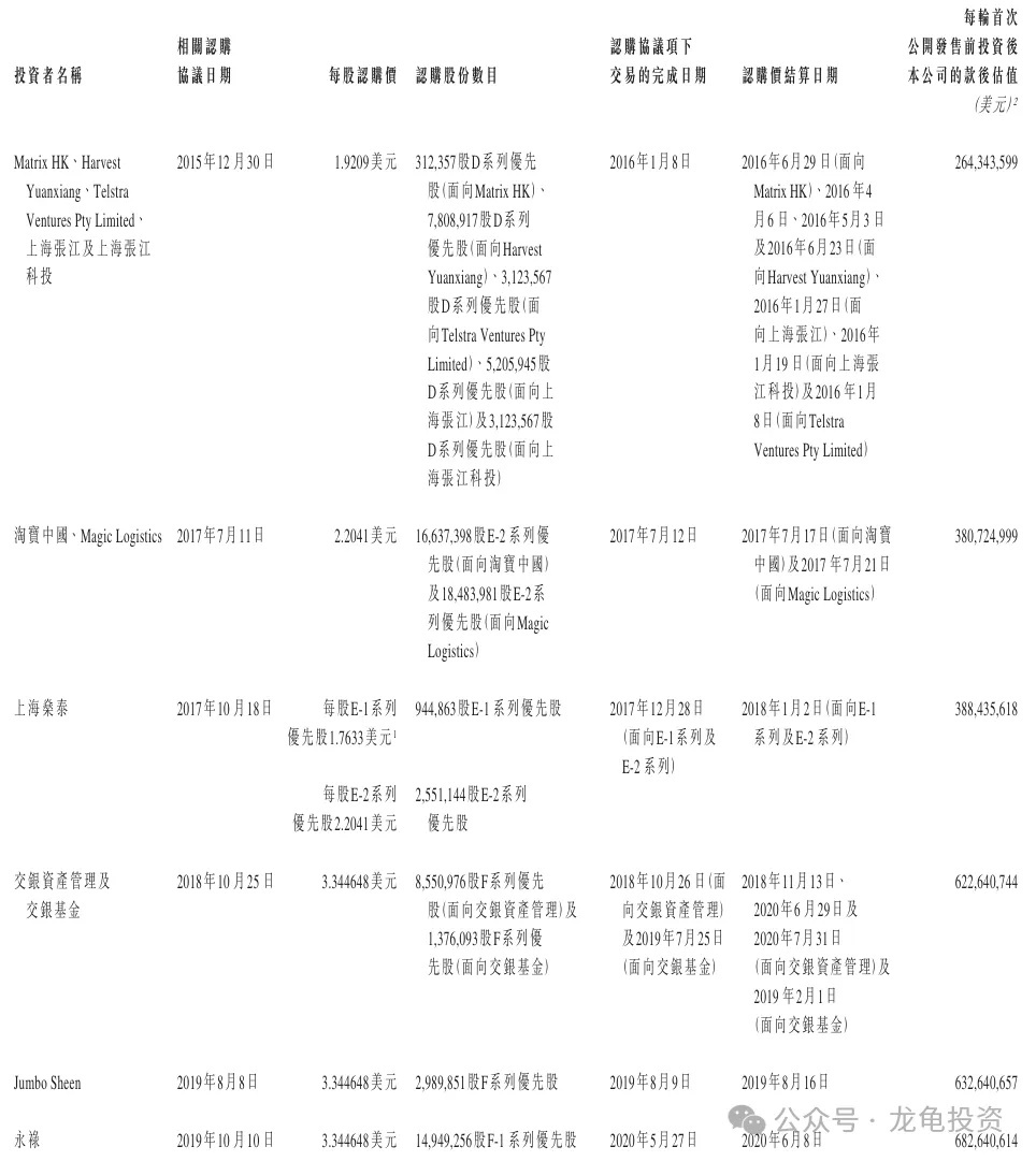 The company has completed multiple rounds of financing, with the last round completed on December 2, 2018, at HKD 2.8978, with a post-investment valuation of USD 682.6 million, approximately HKD 5.307 billion. Pre-IPO investors are subject to a 12-month lock-up period.