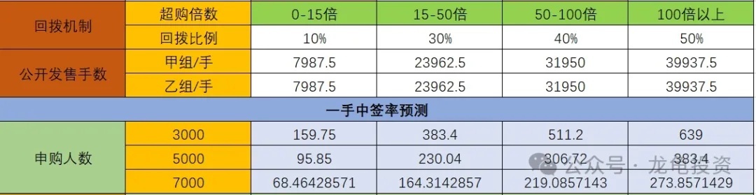 The company is offering 159.75 million shares globally, with 1,000 shares per lot. As of the time of writing, the oversubscription rate is 3.96x. Based on the current margin financing situation, there will be no clawback. There are 7,987.5 lots each for Group A and Group B, with an estimated 3,000-7,000 participants. The lottery winning rate for one lot is 100%.