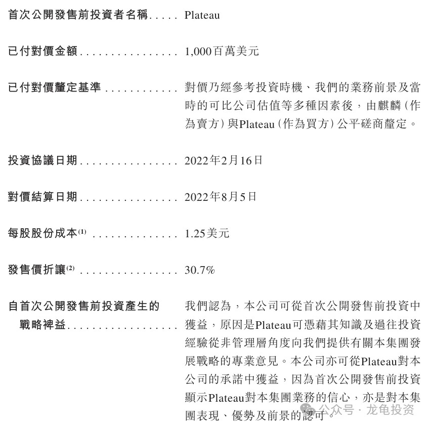 Pre-IPO investor Plateau invested a total of USD 1 billion (approximately HKD 7.769 billion) in China Resources C'estbon Beverage, with a cost per share of USD 1.25 (approximately HKD 9.71), representing a 30.7% discount to the offer price. Pre-IPO investors are subject to a six-month lock-up period.