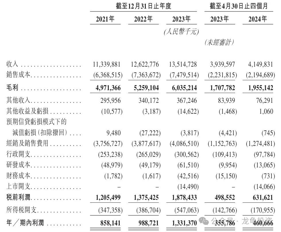 Gross Profit:RMB 4.971 billion in 2021, RMB 5.259 billion in 2022, and RMB 6.035 billion in 2023.