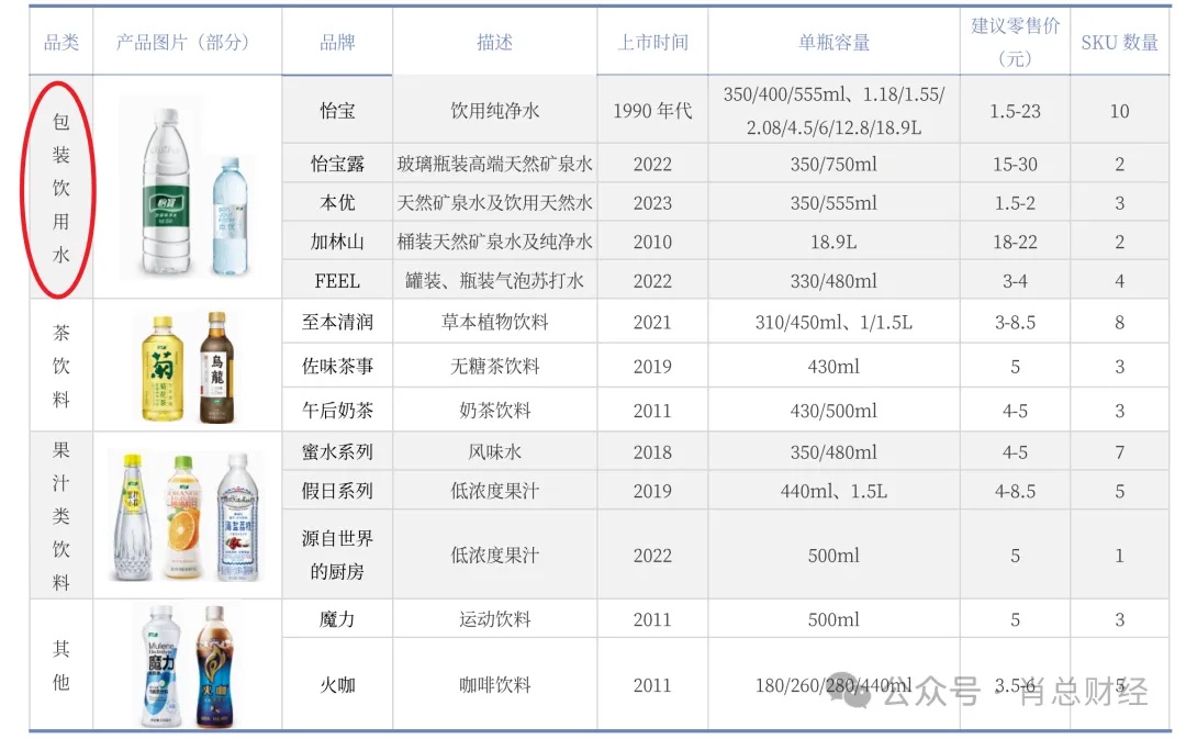 The revenue gap is understandable, mainly because China Resources’ product lineup is relatively singular, relying heavily on the "C'estbon" purified water series. Nongfu Spring, on the other hand, has a more diversified product range, including its red-bottle natural drinking water and a significant beverage portfolio.