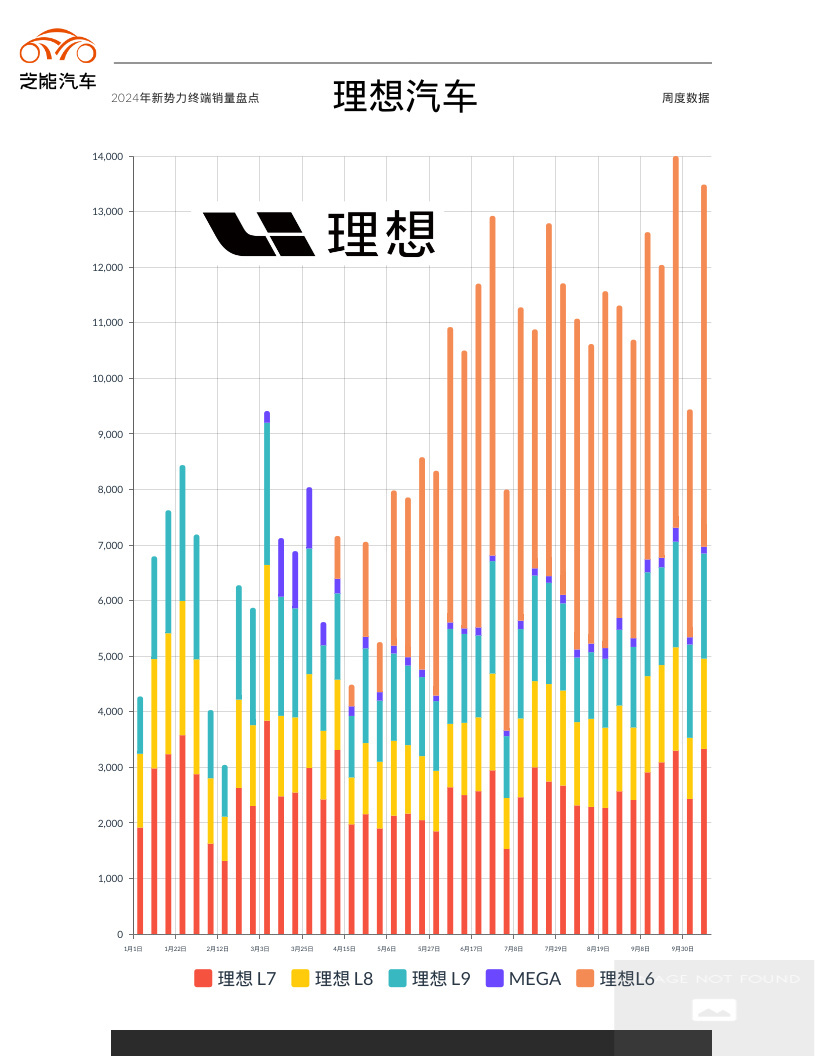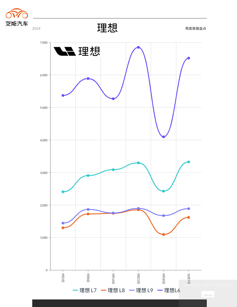 ◎ 理想汽车以 1.34 万辆的成绩领跑市场,其中 L6 车型销售了 6500 辆,L7 车型销售了 3300 辆,两款车型合计接近 1 万辆,表明 30 万元左右的价格区间具有较高的市场接受度。