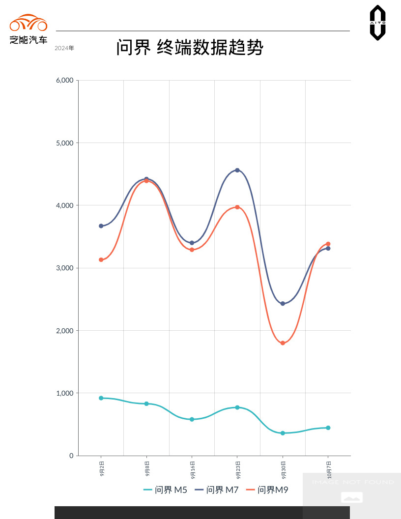 ◎ 问界汽车以 0.71 万辆的销量排名第三,其中 M9 车型表现尤为突出。