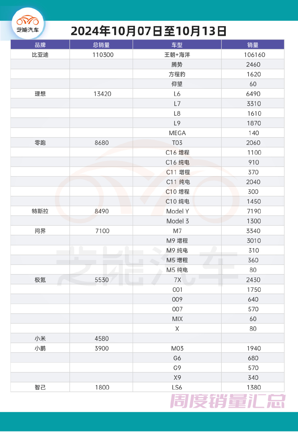 新能源周销量| 2024 年第 41 周:市场回暖,比亚迪新能源突破 10 万