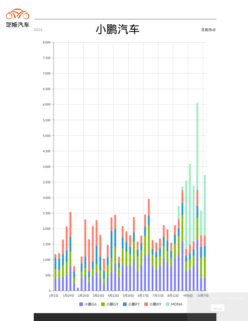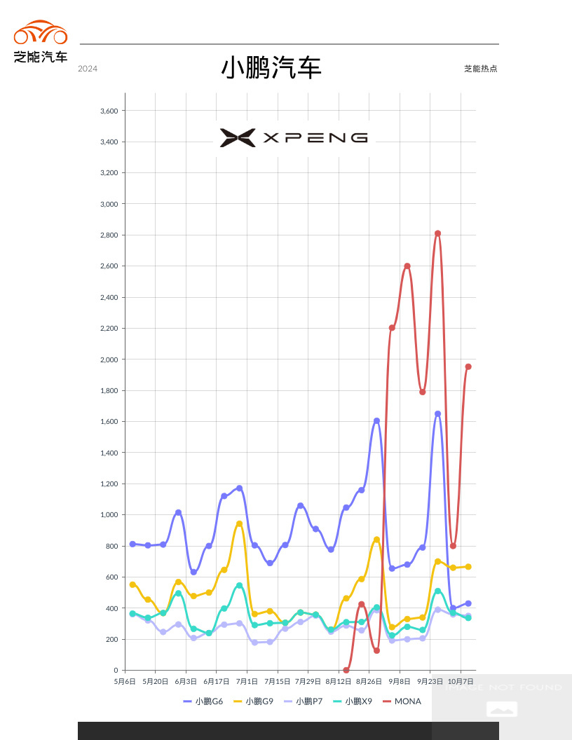◎ 小鹏汽车销量为 0.39 万辆,Mona M03 车型贡献了约一半的销量。