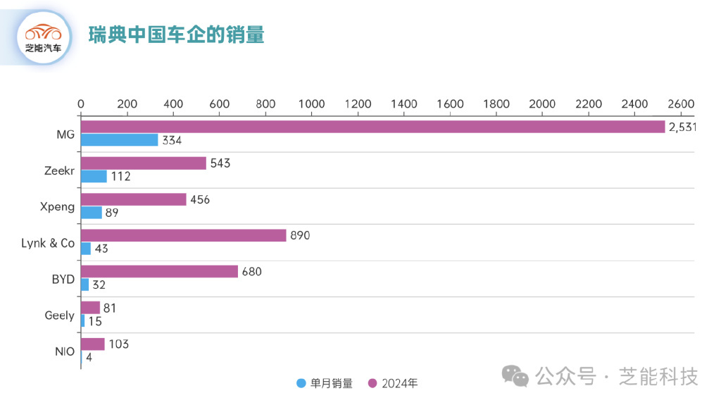 中国车企在瑞典的销量为:
