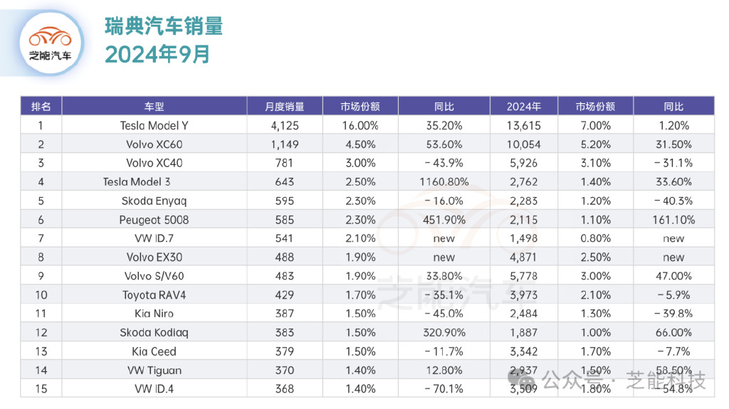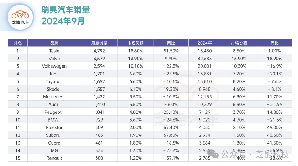 全球车市 | 9 月瑞典汽车市场 特斯拉第一,中国军团表现良好