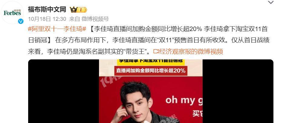 Image: Li Jiaqi's first-day performance report for 2024 Singles' Day. Source: Forbes China Weibo