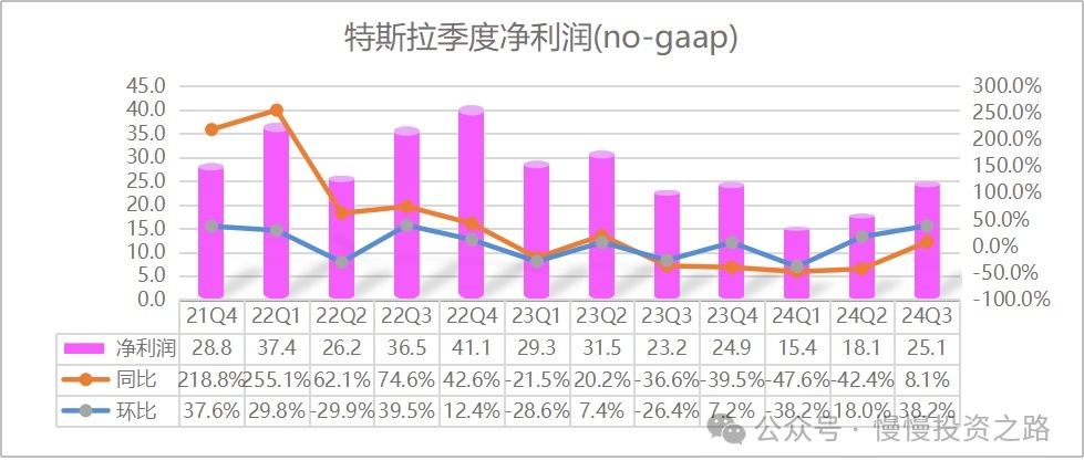 Tesla’s Q3 non-GAAP net profit was $2.51 billion, up 8.1% YoY—the first positive growth after four quarters of declines, likely signaling a bottom.