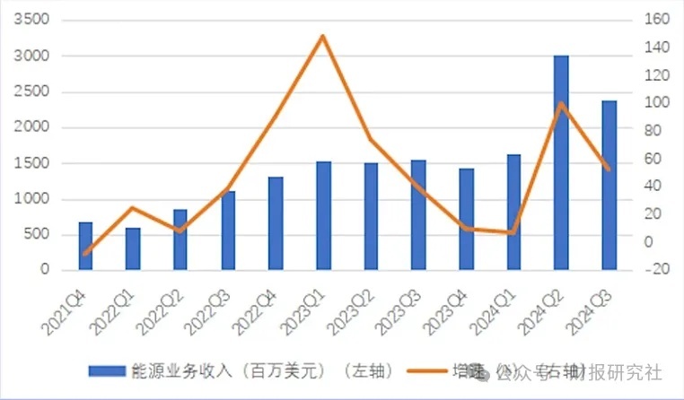 This quarter, Tesla's energy revenue hit $2.376 billion, up 52.4% year-on-year