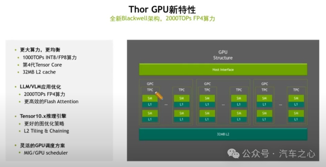 不同于以往的 NVIDIA Ampere 架构,Drive Thor 基于全新 NVIDIA Blackwell 架构,诞生出了全新特性: