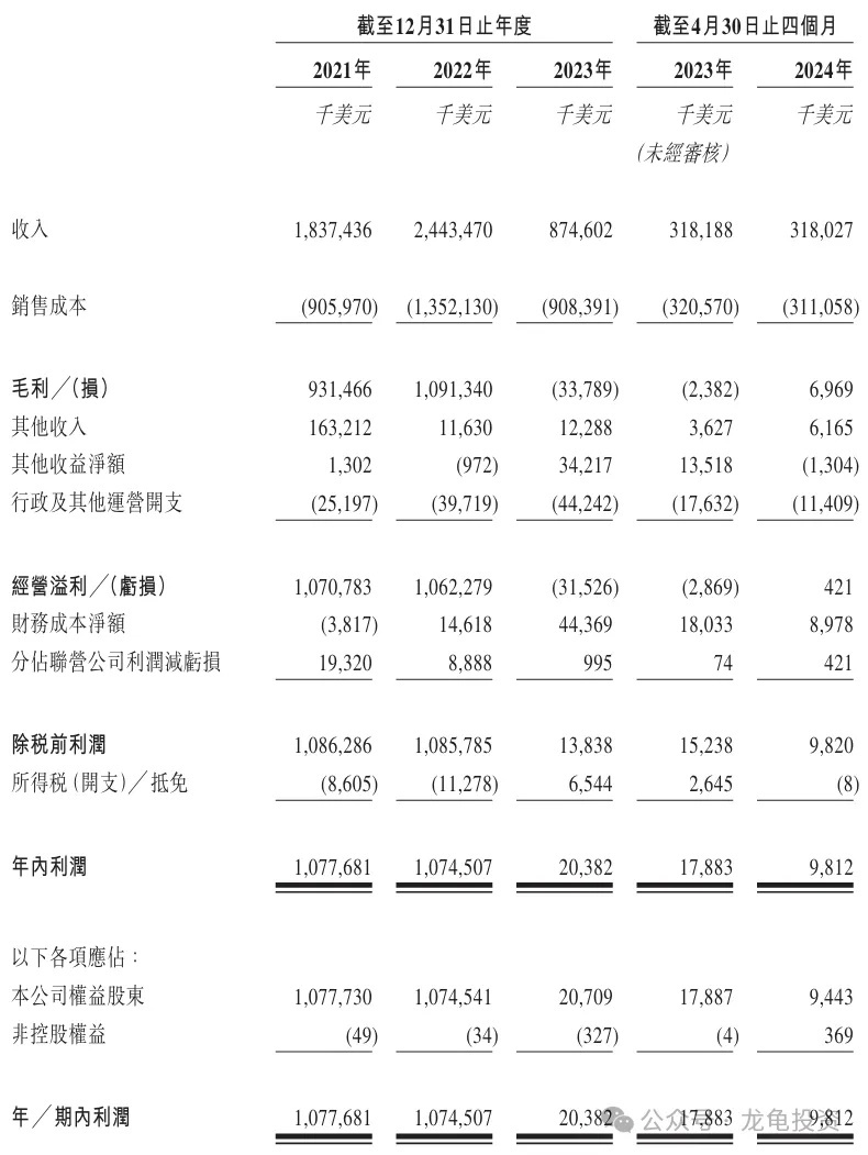 Net Profit/(Loss):2021: RMB 1.077B, 2022: RMB 1.074B, 2023: RMB 20.4M;