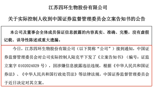 On the evening of October 21, Sihuan Bio-Technology announced that its actual controller, Lu Keping, received a "Case Filing Notice" from the CSRC for suspected violations of information disclosure regulations, leading to the initiation of an investigation.