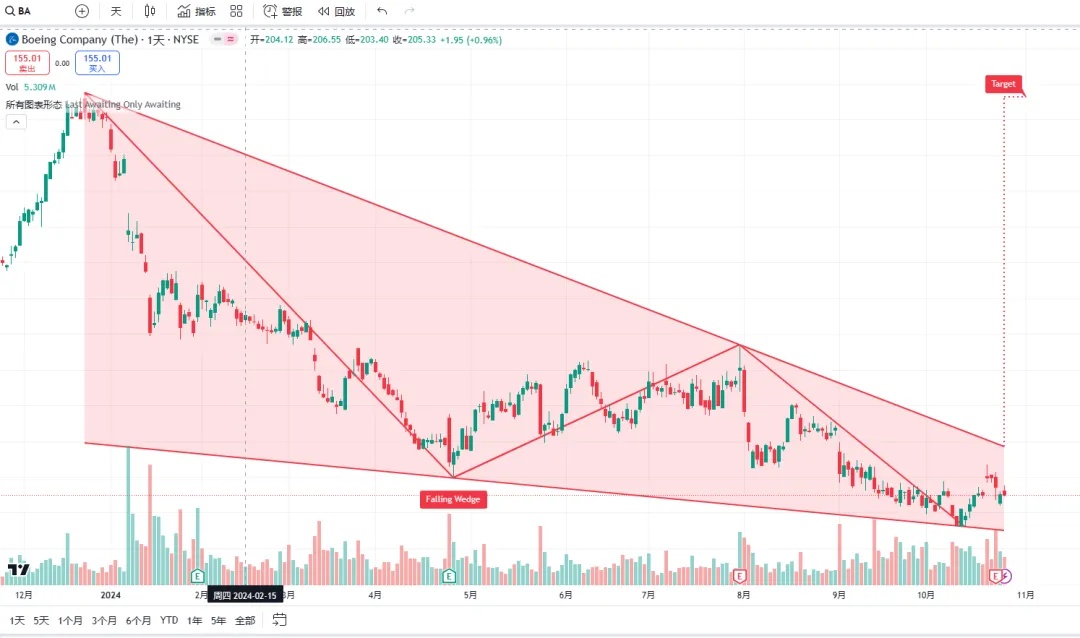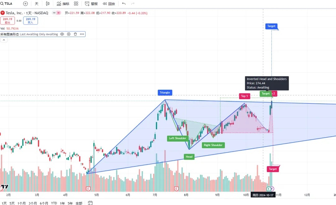 特斯拉走完了一个头肩底形态,目标价 274.4 左右,不过也已经快到了
