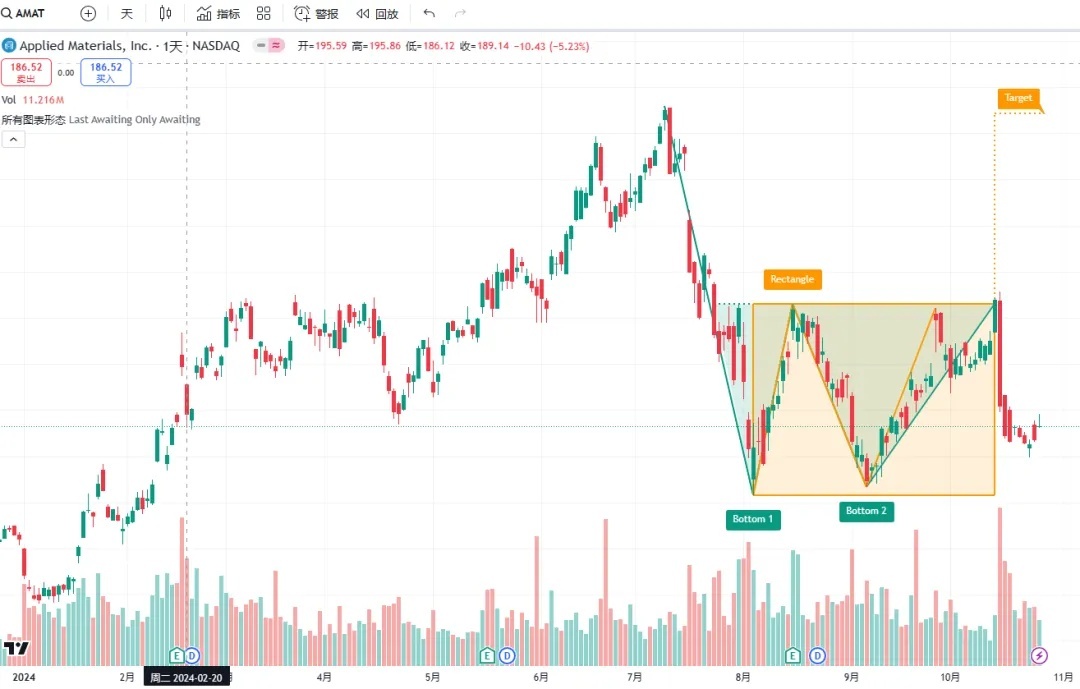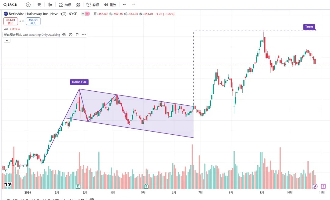 刚刚突破了三角形,目标价可是 394,还有一个未形成的小双顶