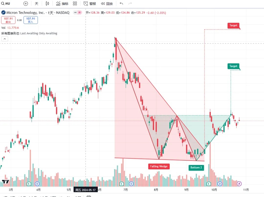 亚马逊是走完了上升楔形,目前目标价是 138.65,但是之前有一次大跌到 151 了,我觉得可能到不了 138 了