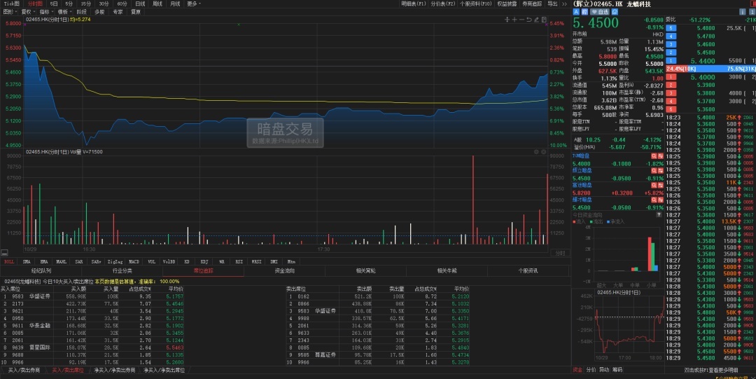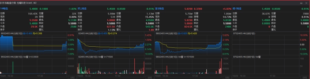 LOPONTECH (02465.HK) opened flat at HKD 5.50 in Phillip’s gray market, spiked to a high of HKD 5.80, then immediately dropped to a low of HKD 4.95 before stabilizing and gradually climbing back in small fluctuations. It closed at HKD 5.45, down 0.91%, with a 15.45% amplitude.