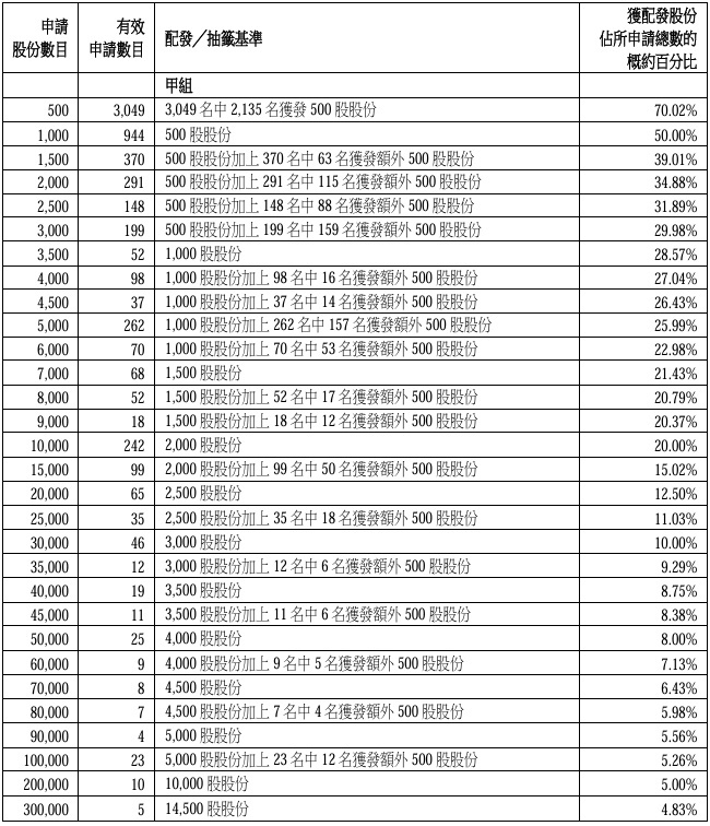 LOPONTECH (02465.HK)’s B-group officially disclosed allocation list shows 4 people got 357,500 shares, 4 got 446,500 shares, and 2 got 892,000 shares. The B-group was allocated a total of 5 million shares, worth HKD 27.5 million.