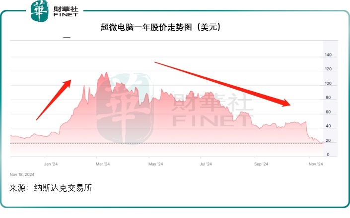 However, after April, NVIDIA's stock continued to rise, overtaking $Apple(AAPL.US) to become the world's most valuable company, while Super Micro Computer's stock plummeted, nearly returning to its original level, as shown below.