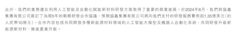 According to its financial report, in August 2024, XtalPi signed a five-year strategic R&D cooperation agreement with GCL Group. The collaboration includes joint R&D in new energy materials, AI large models for the new energy sector, and robotic automation systems.