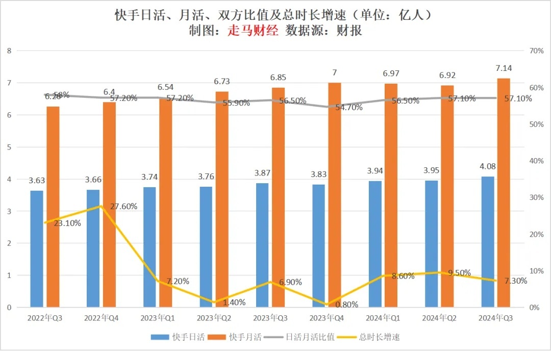 In Q3, Kuaishou's DAU hit a record 408 million, while MAU also reached a new high of 714 million. The DAU/MAU ratio remained at a historically high level of 57.1%, indicating highly active users. Average daily time spent per user was 132.2 minutes, with total user time growing 7.3% YoY—all metrics at their best levels ever. While the Olympics contributed partially, the more significant factor is likely Kuaishou's community ecosystem and platform attributes gaining stronger recognition among its core users.