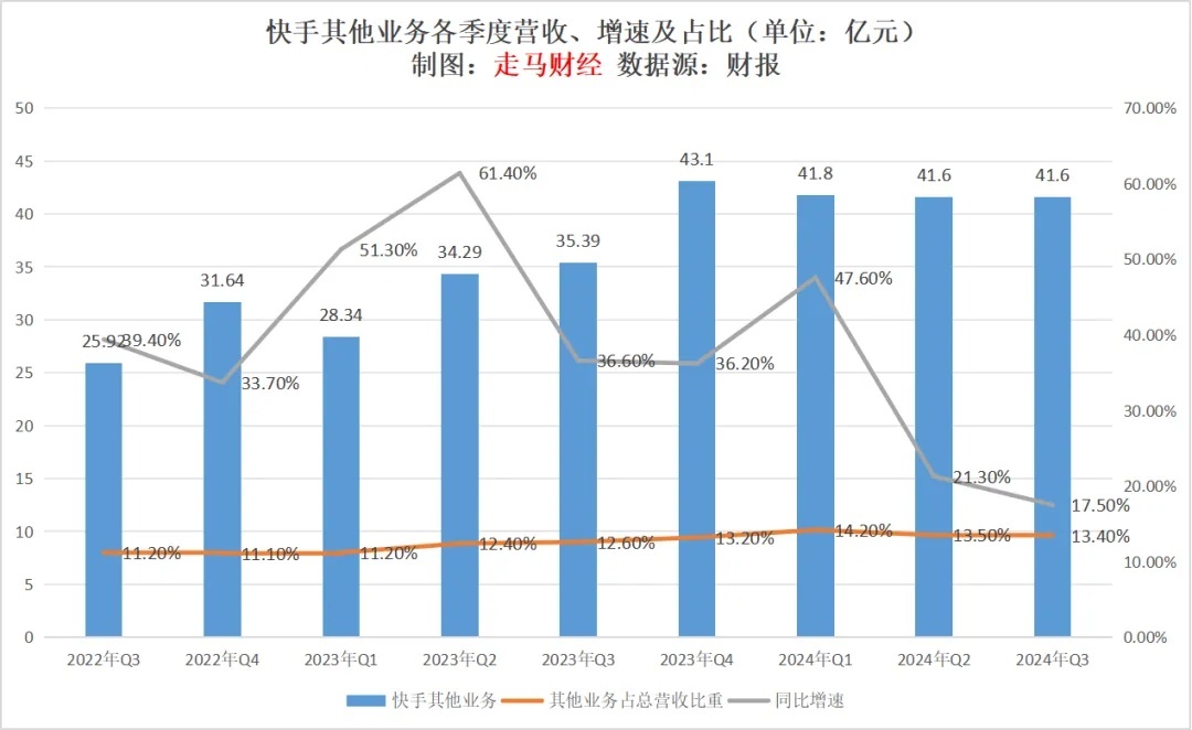 Starting in Q3, Kuaishou grouped advertising and e-commerce-led "other services" together as core commercial revenue. These revenues are essentially part of the same commercialization ecosystem. Kuaishou's advertising business includes both outbound-loop (brand, app download ads) and inbound-loop (ads placed by merchants/influencers for e-commerce/local services). "Other services" mainly comprise e-commerce commission fees. Combined, these resemble Alibaba's customer management revenue (ads + commissions), totaling 21.79 billion yuan in Q3—up nearly 20% YoY, far outpacing industry averages.
