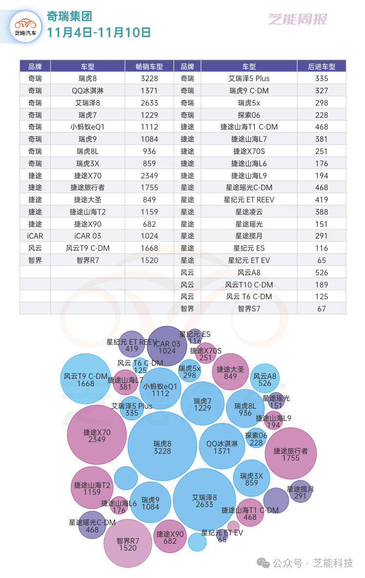 芝能车市周报 | 奇瑞第 45 周:稳定每周三万台,还有上升空间