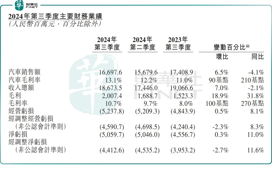 In the third quarter, Nio's revenue was RMB 18.673 billion, falling short of market expectations, down 2.1% year-on-year but up 7% quarter-on-quarter. Vehicle sales amounted to RMB 16.698 billion, down 4.1% year-on-year but up 6.5% quarter-on-quarter. This was mainly due to changes in product mix leading to a decline in average selling prices, partially offset by increased deliveries.