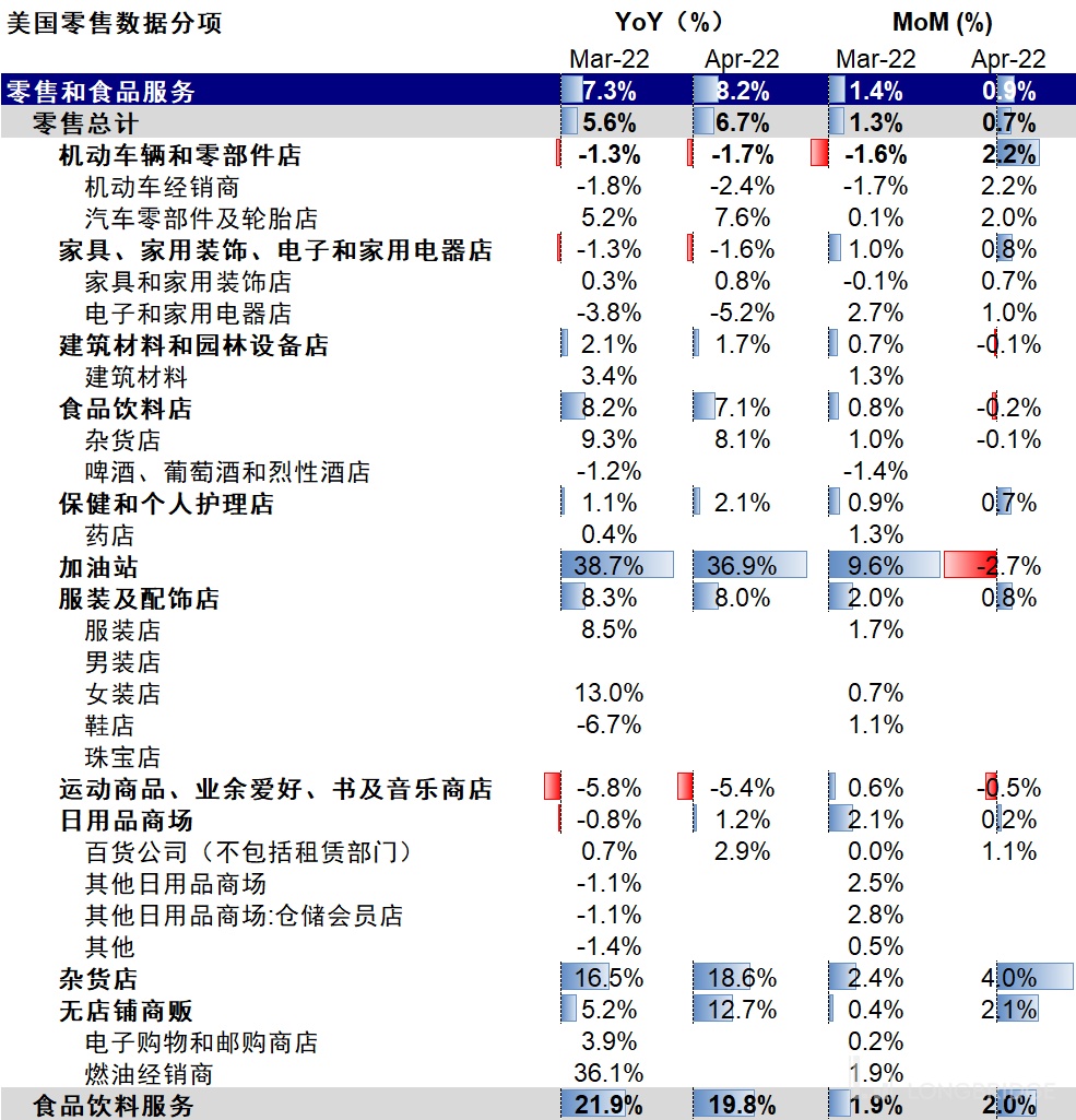 - 能源类消费爆拉:加油站销售额虽然增速小幅放缓,但同比依然有高达 37% 的增长。