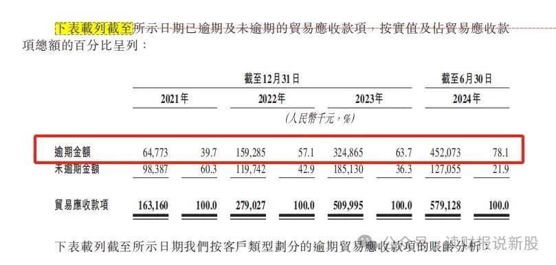 As shown, 450 million yuan of overdue receivables account for 78% of total receivables