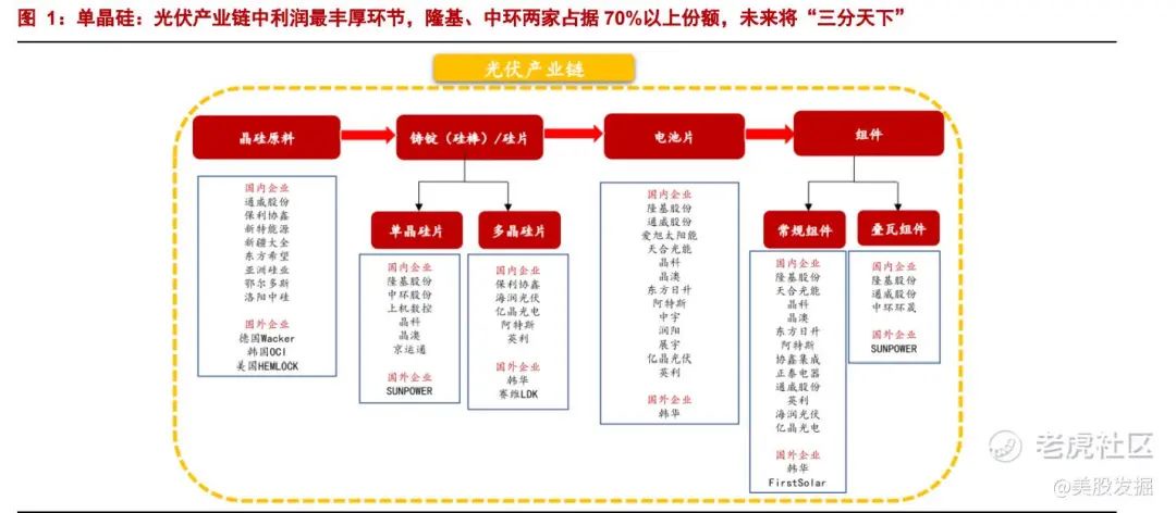 2022 年以来,受益于下游需求高增的支撑,硅料价格强势程度超市场预期,预计硅料盈利能力持续提升,目前最确定的应该是通威股份,硅料的价格目前仍然处于高位。短期看,光伏一季度数据强劲,随着硅料新产能持续释放,供给端逐渐充裕有望带动下游需求增长。长期看,光伏行业或再现戴维斯双击,持续底部推荐,细分板块顺序硅料>电池>硅片>组件,建议积极布局拥有 alpha 的公司。板块公司如下。