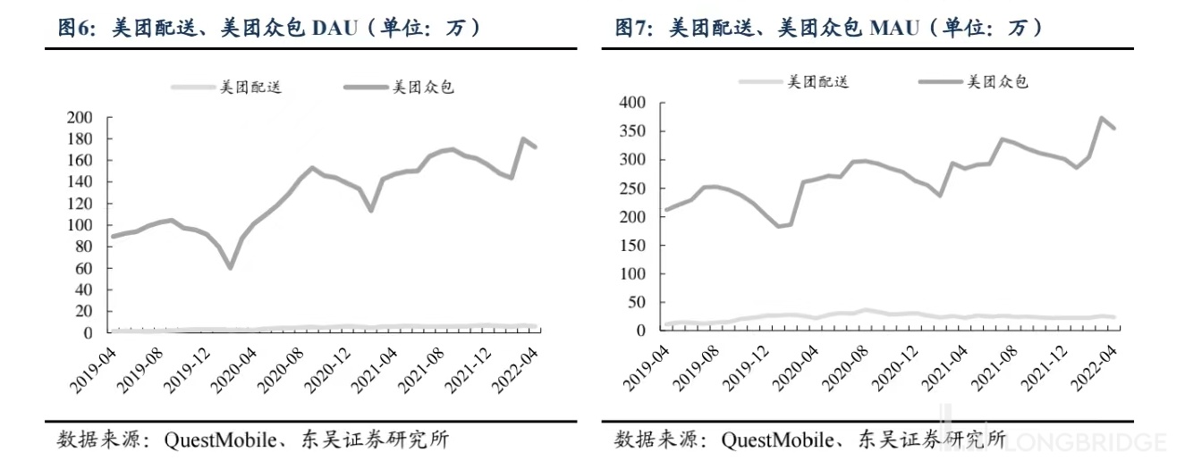 商家端用户活跃数同比出现大幅上升。2022 年 4 月,美团外卖商家版 DAU 与 MAU 分别同比增长 17%、15%,环比下降 2%、2%。