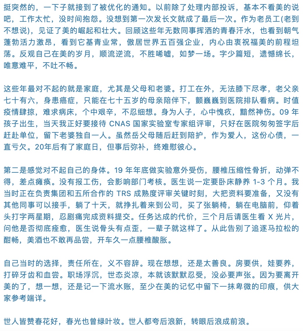 在留言中,这位老员工称,以前除了处理内部投诉,基本不看美的的(说吧),没想到第一次发长文就是最后一次。