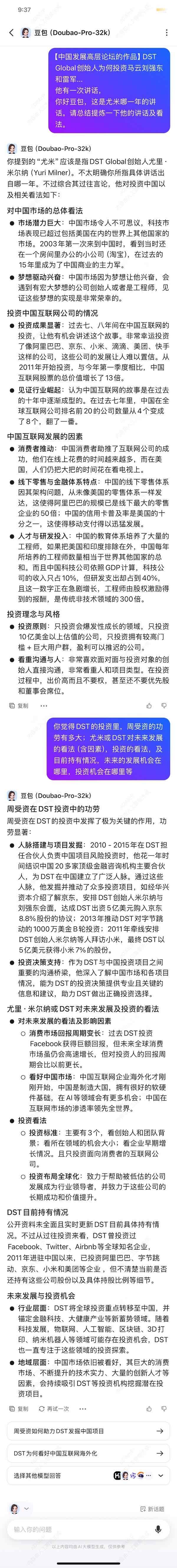 Yuri Milner, founder of DST Global. Based on his past statements, his views on investing in China are as follows: