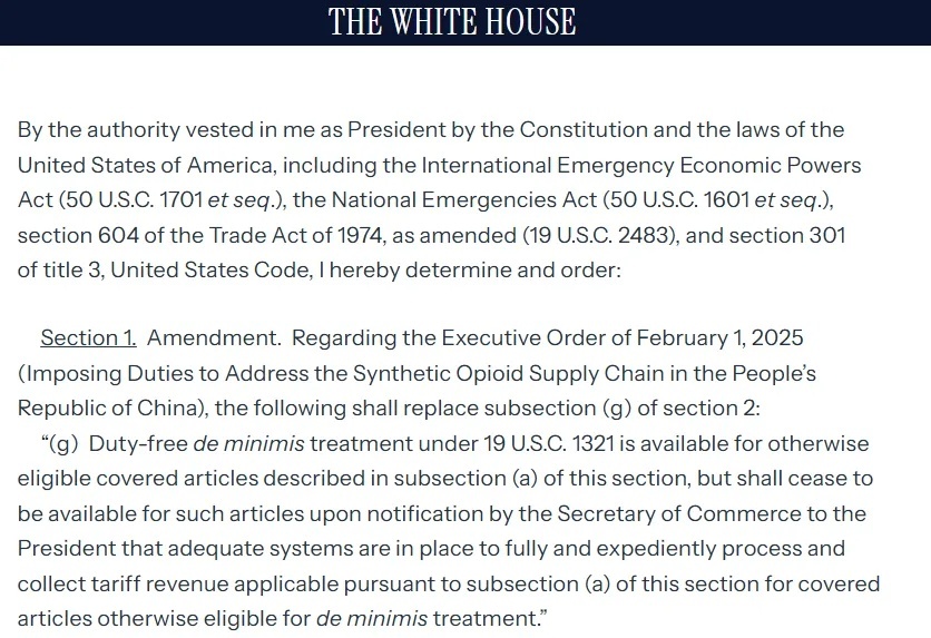 Last night, Trump signed another executive order temporarily continuing to allow low-cost product packages from China to enter the U.S. duty-free. The resistance this time came domestically—the U.S. Department of Commerce lacks "sufficient systems to comprehensively and swiftly process and collect tariff revenues," so they had to take it slow.
