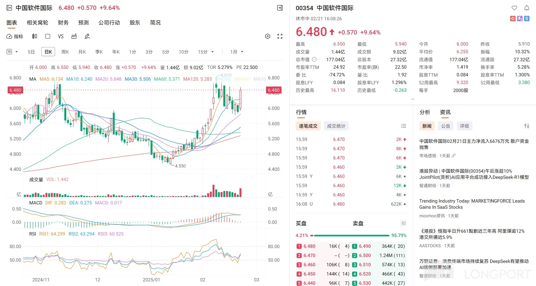 - Stock Performance: Feb 21, 2025 price: HK$6.480 (+9.64%), volume: 14.42M shares.