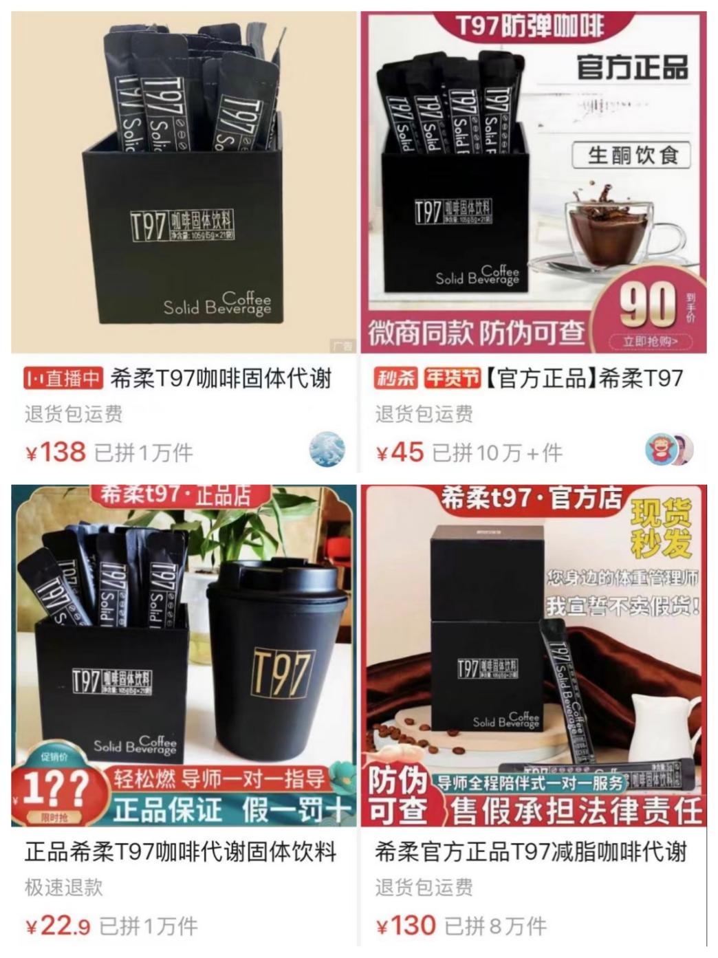 在中国消费市场上,从来不缺 “模仿者”。而 T97 低卡咖啡上线后不俗的销售表现,也为它带来了烦恼。潇掌柜说:“上线 20 多天市场上就有假货了,假货价格便宜,销量比真货多得多,真的非常无语。实际上看配料表和防伪商标是可以区分的。”