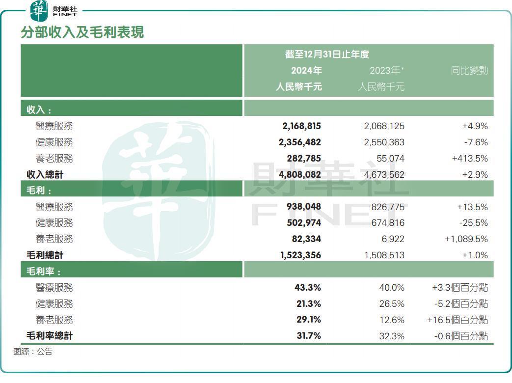 Additionally, elderly care services generated revenue of RMB 283 million for the year, surging 413.5% year-on-year, with the gross margin for this segment increasing by 16.5 percentage points to 29.1%.