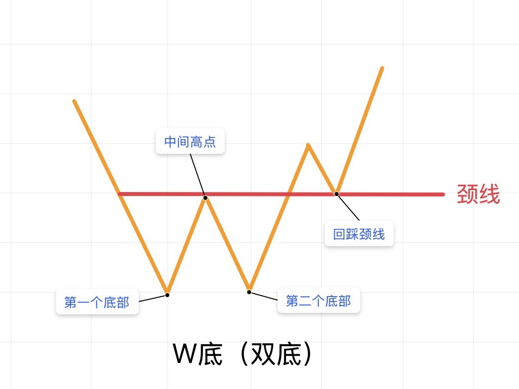A W-bottom, also known as a double bottom, is a common reversal pattern that resembles the letter "W". It usually appears at the end of a downtrend, indicating a potential price rebound or reversal upward. It is an important signal for traders looking for buying opportunities.