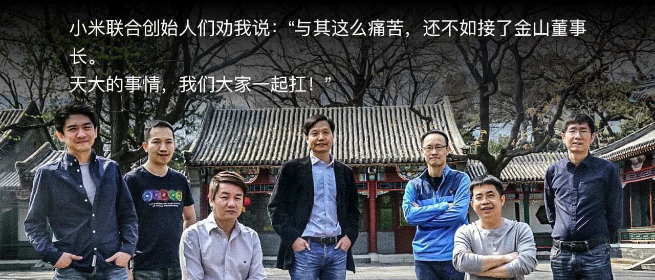 On July 7, 2011, Lei Jun tweeted a photo with Kingsoft's elders, announcing his return as chairman.