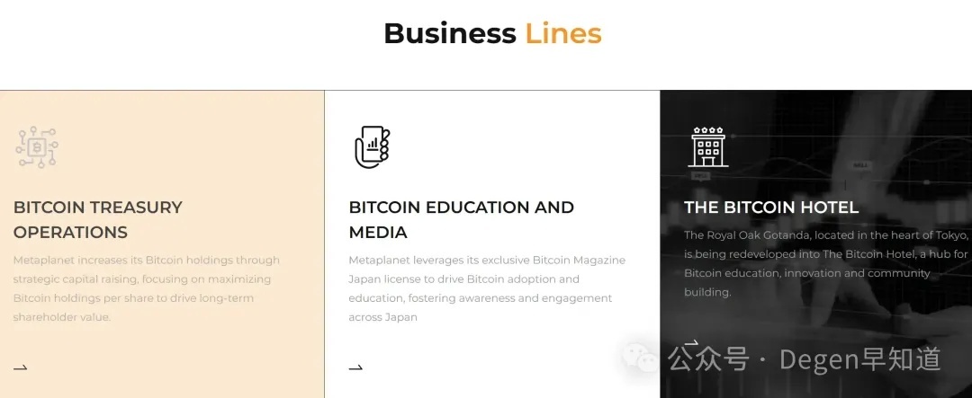 Metaplanet 业务范围(持有 btc、btc 教育、btc 主题酒店),图源:Metaplanet