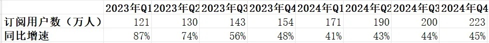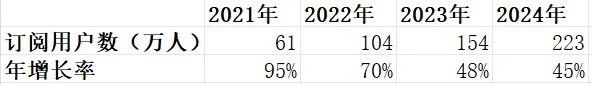Subscribers grew from 610K (2021) to 2.23M (2024):